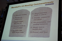 Marshal Makstein gave us the 10 meeting commandments on the slide below. One of the attendees Nelly Yusupova has a post that summarizes this panel 40 tips to transform your business. I think Nelly who is the CTO at Webgrrls International, and Cybergrrl, Inc was a panelist for the Small Business Technology Summit in 2007.